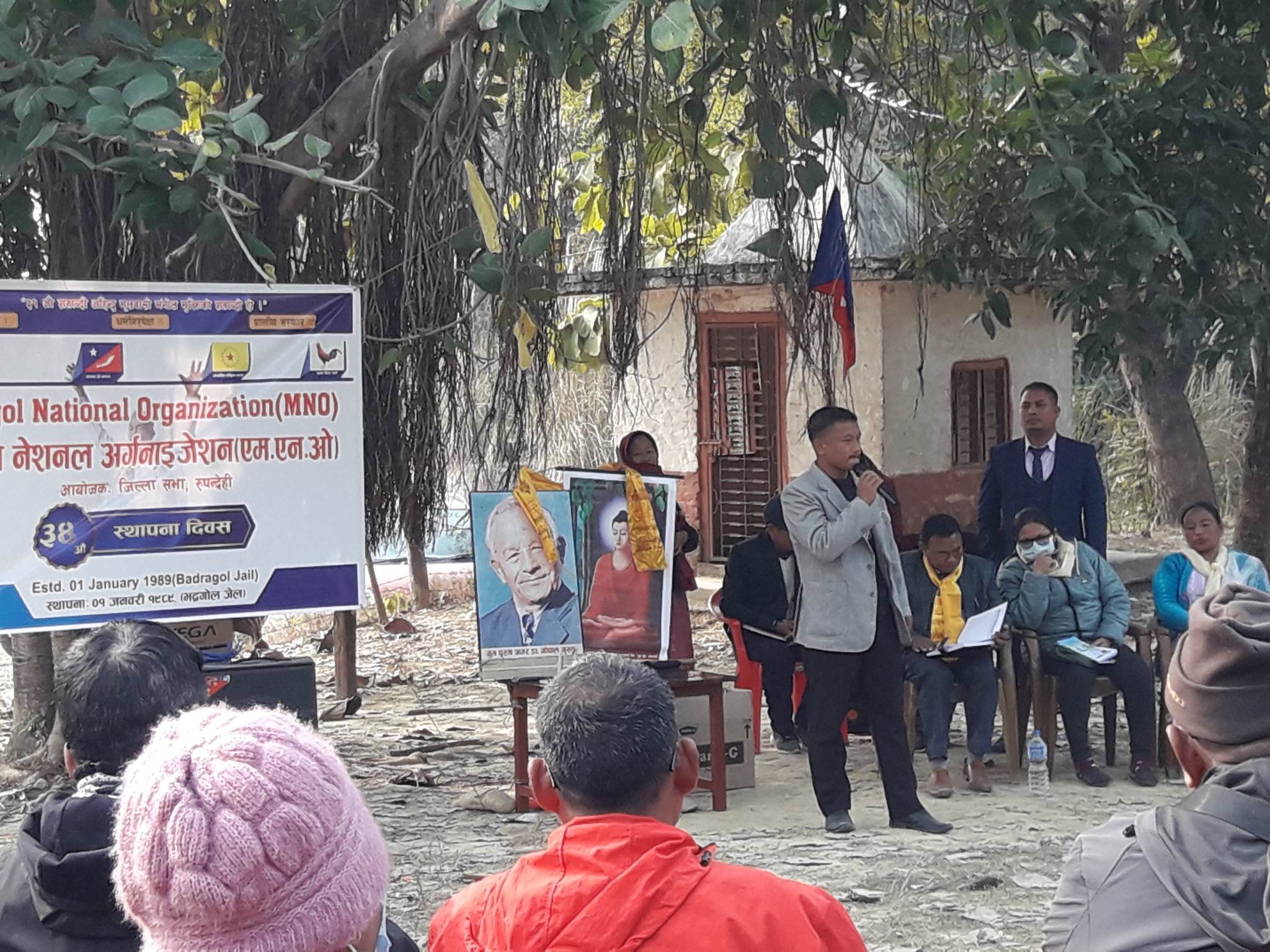 मंगोल नेश्नल अर्गनाइजेसन रुपन्देहीले पार्टीको ३४ औं स्थापना दिवसको अवसरमा कार्यकर्ता भेला सम्पन्न गरेको छ। रुपन्देहीको सैनामैना वडा नं. २ स्थित समयमाई मन्दिर परिसरमा सम्पन्न उक्त भेलामा बोल्ने वक्ताहरुले नेपालमा रहेका हरेक मंगोलहरु एकिकृत भई शरणार्थीको रुपमा आएका ब्राह्मणवादी चिन्तन सहितको राज्यसत्ता खोस्नुको बिकल्प नभएको बताएका छन।