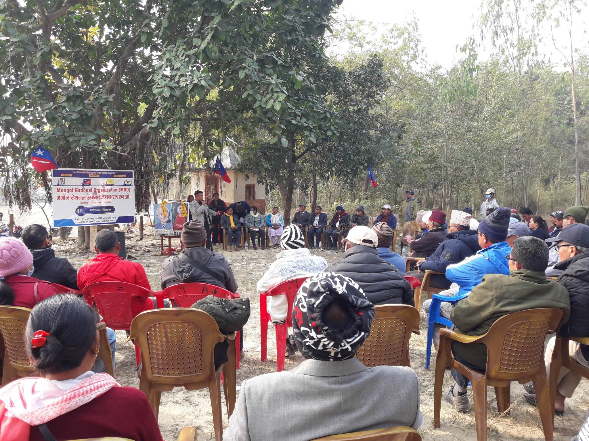 मंगोल नेश्नल अर्गनाइजेसन जिल्ला सम्मेलन तयारी समितिका संयोजक प्रेम अढई मगरको अध्यक्षतामा भएको कार्यक्रममा पार्टीका सल्लाहकार पुर्ण बहादुर आले, खिल बहादुर गाहा, बुद्धी सागर थारु, कर्ण बहादुर गुरुङ्ग, सोम बहादुर थापा लगायतले मंगोल राज्यसत्ता फर्काउन देशभरका मुलवासी मंगोलहरुको एकता आवस्यक रहेको र मंगोलहरुको एकताले मात्र मंगोल राज्यसत्ता प्राप्त हुने उल्लेख गरेका थिए।