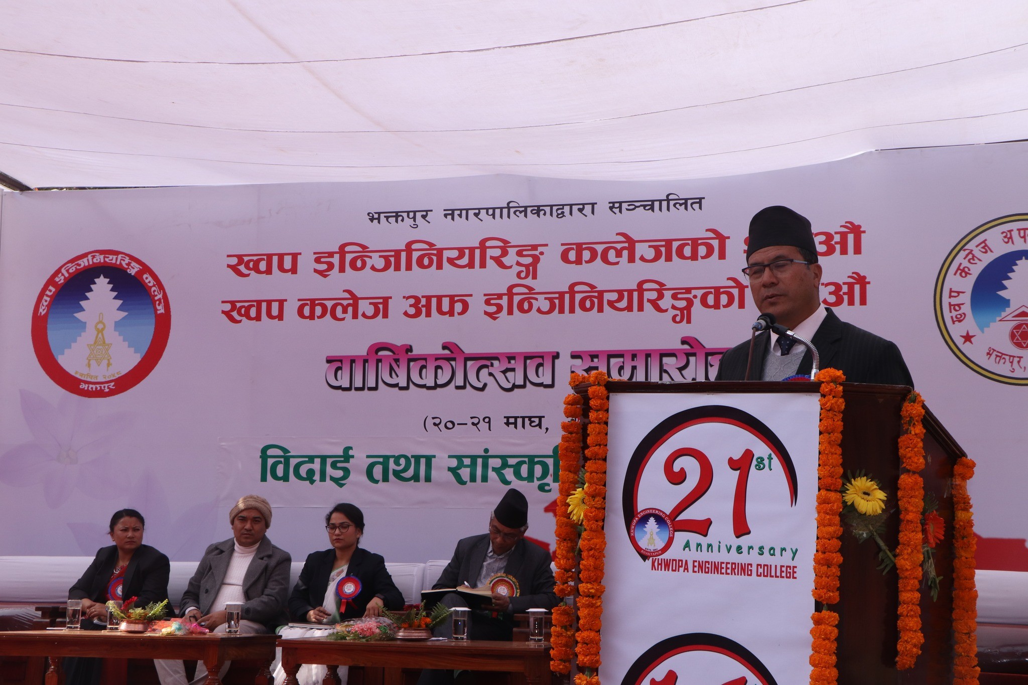 भक्तपुर नगरपालिकाद्वारा सञ्चालित ख्वप इन्जिनियरिड्ड कलेजको २१ औं र ख्वप कलेज अफ इन्जिनियरिड्डको १४ औं बार्षिकोत्सव समारोहको विदाई तथा सांस्कृतिक कार्यक्रममा नेपाल मजदुर किसान पार्टीका केन्द्रीय सचिव तथा प्रतिनीधि सभा सदस्य श्री प्रेम सुवालको प्रमख आतिथ्यमा शनिबार सम्पन्न भयो ।