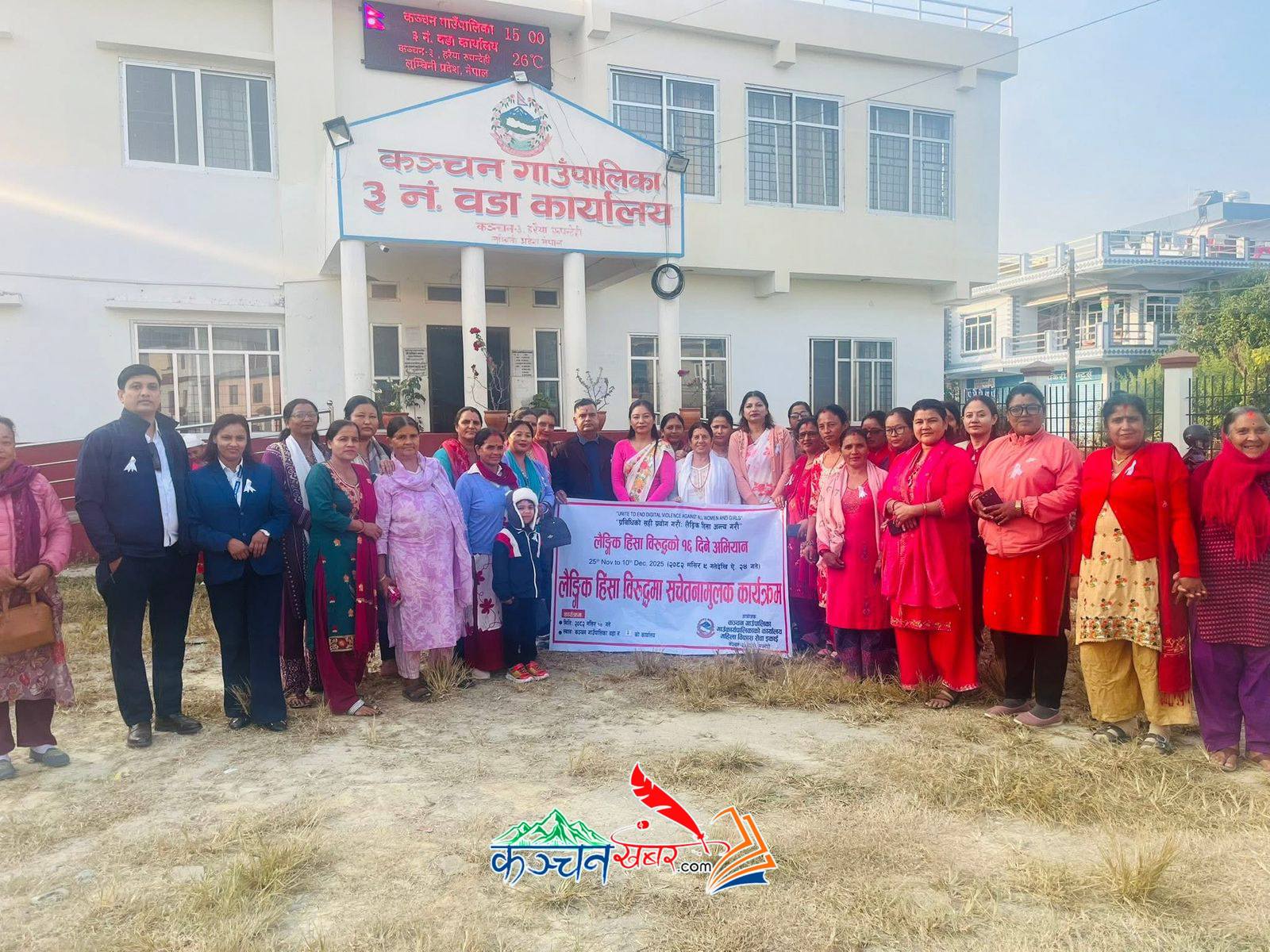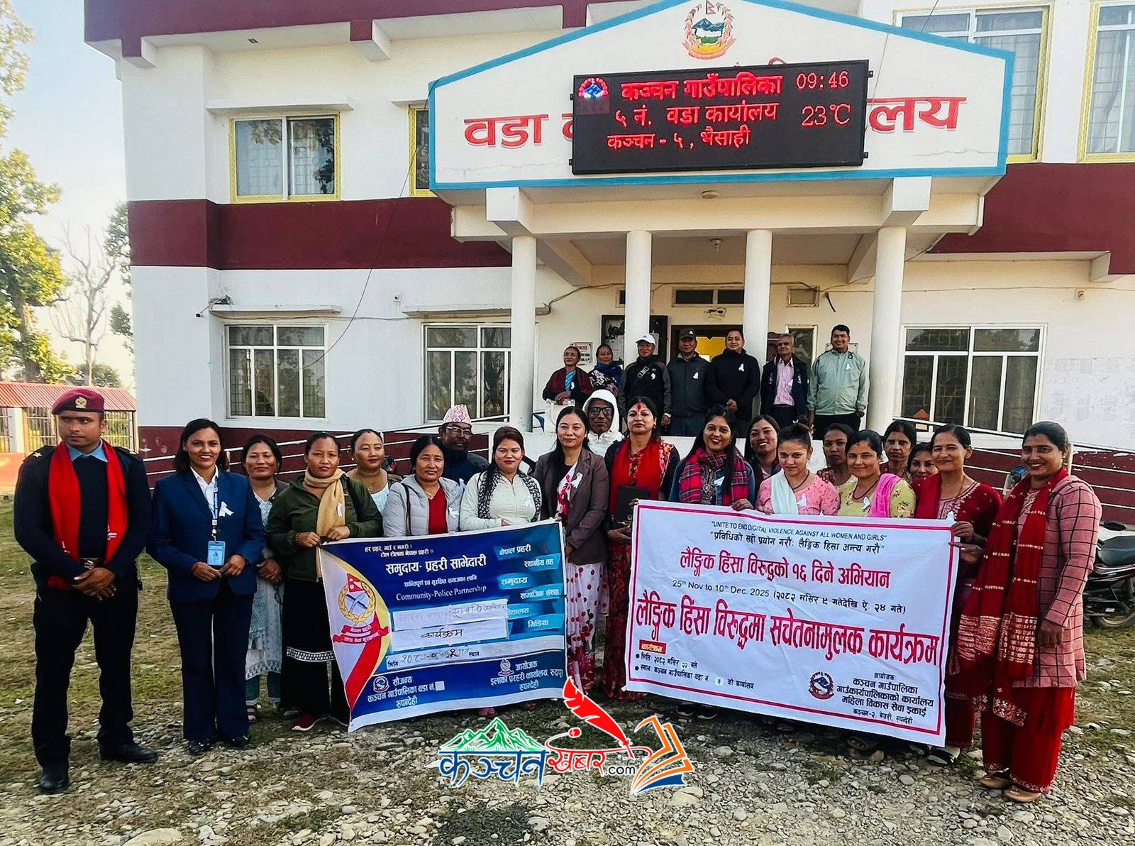 कार्यक्रमको अध्यक्षता गर्दै कञ्चन गाउपलिकाका उपाध्यक्ष मौसमी थापा मगरले पालिकालाई लैंगिक हिंसा हुनबाट सुरक्षित गर्न महिलाहरु कानूनी रुपमा सचेत हुन आवस्यक रहेको उल्लेख गर्नु भयो। महिला तथा बालबालिका विरुद्ध हुने हिंसा रोकथामका लागि स्थानीय स्तरमा महिलाहरुमा नीतिगत पहल र त्यसको उपयोगबारे सशक्तीकरण गराउन आवस्यक रहेको समेत उपाध्यक्ष थापा मगरले जोड दिनु भयो।