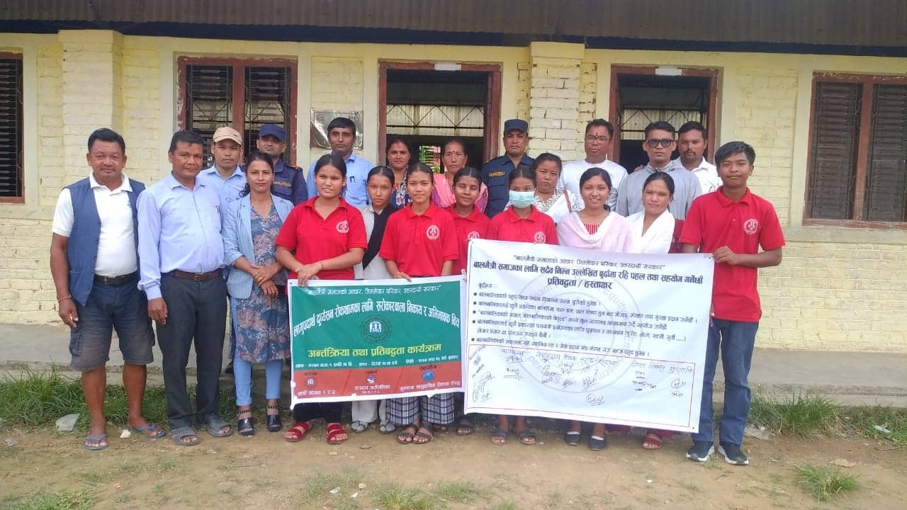 "बालमैत्री समाजको आधार,जिम्मेवार परिवार र उत्तरदायी सरकार" भन्ने मुल नाराका साथ लागु पदार्थ दुर्व्यसनी रोकथामका लागि सरोकारवाला निकाय र अभिभावकहरु बिच अन्तरकृया तथा प्रतिबद्धता र बाल अधिकार सुनिश्चित्तामा स्थानीय सरकार र अभिभावक बिच अन्तरकृया कार्यक्रम गरी बाल अधिकार संरक्षणका लागि सरोकारवालाहरुले जिम्मेवार हुनु पर्नेमा जोड दिएका छन।
