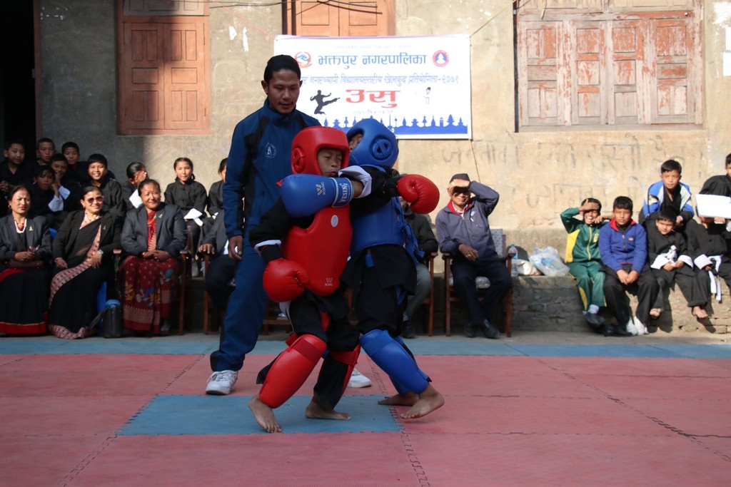 यसैगरी उपप्रमुख रजनी जोशीले खेलकुदमा हारजित स्वाभाविक भएको बताउनुहुँदै अनुशासन र मित्रताको लागि खेलकुदमा सहभागी हुन खेलाडीहरुलाई हौसला प्रदान गर्नुभयो । भक्तपुर नपा वडा नं. १ का वडाध्यक्ष तथा भक्तपुर नपा खेलकुद समितिका संयोजक श्यामकृष्ण खत्रीले भक्तपुर नगरव्यापी विद्यालयस्तरीय खेलकुद प्रतियोगितामा भलिबल, टेबुलटेनिस, उसु, पोर्टबल, कबड्डी, तेक्वाण्डो, कराँते, एथ्लेटिक्स, ब्याडमिन्टन÷जिम्नास्टिक, फुटसल, खोखो, बुद्धिचाल, कसिमला पाँय् गरी १४ ओटा खेलका लागि प्रतिस्पर्धा हुने जानकारी दिनुभयो ।