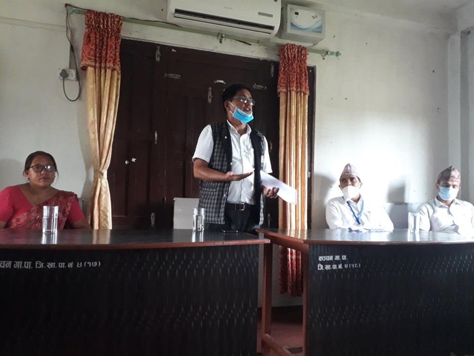 कञ्चन गाउपालिकाका अध्यक्ष गोकर्ण बहादुर क्षेत्रीले संस्थागत बिधालयहरुको मा तथा ध्यानाकर्षण पत्र ग्रहण गर्दै संस्थागत बिधालयहरुले उठाएका सकारात्मक र यथोचित मागहरुको बारेमा आपसमा बसेर छलmिलको माध्यमबाट समाधान गर्न सकिने बताउदै कतिपय सवालहरुमा आवस्यकताको आधारमा समेत निर्णय गर्नु पर्ने अवस्थामा संस्थागत बिधालयहरुको सकारात्मक सहयोग प्राप्त हुने कुरामा समेत बिश्वास ब्यबक्त गर्नु भएको छ। अनलाइन र भर्चुअल (टि.भि., एफ.एम.) कक्षा संचालनका लागि निश्चित योजना बनाएर आवस्यक बजेट ब्यबस्थापन गर्न सकिने अध्यक्ष क्षेत्रीले बताउनु भएको छ।